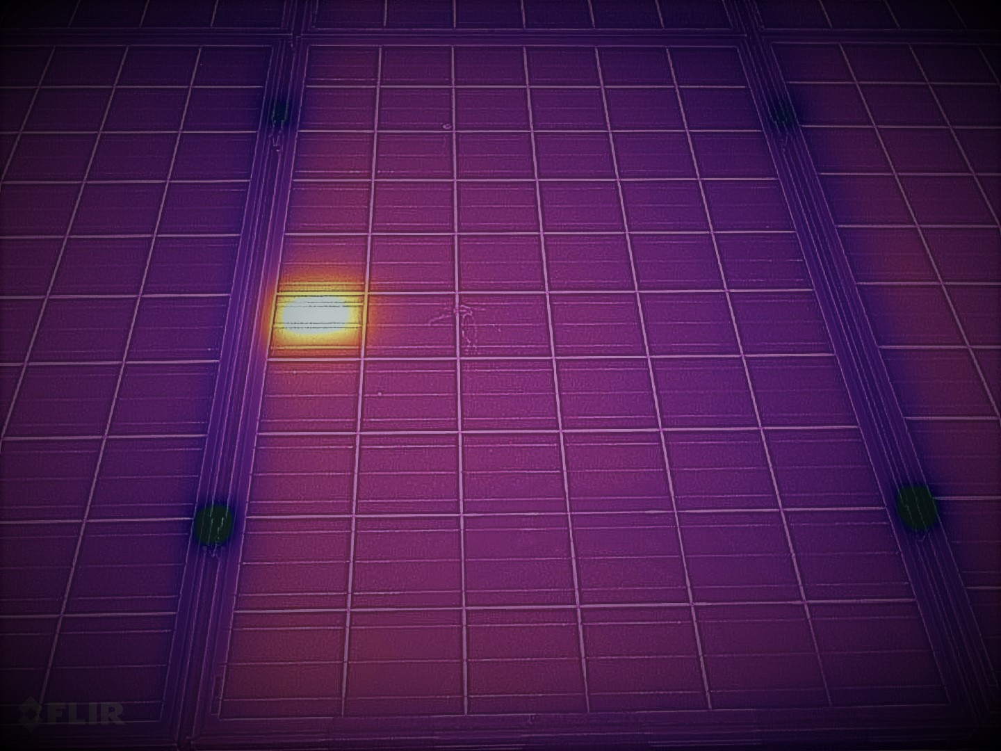 Příklad vadného nového panelu, který byl způsoben výrobní vadou pájení.